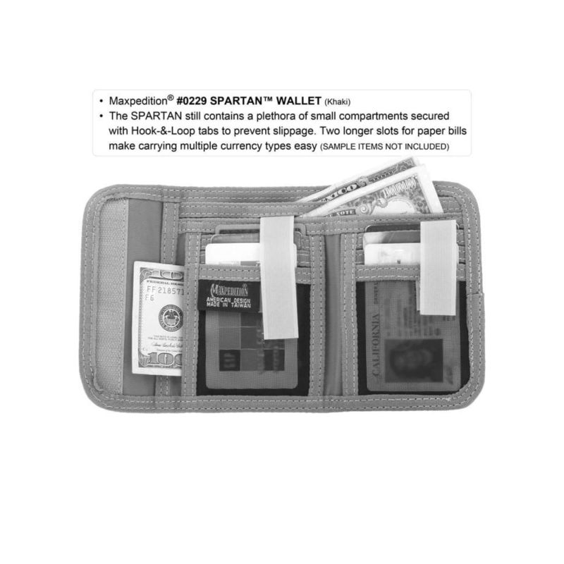 MaxpeditionSpartan Wallet — складной кошелек из плотного материала, позволяет разместить банковские карты, и купюры, и монеты. Универсальные размеры 123 х 92 х 35 мм, легкий вес и мягкая конструкция делают его удобным для использования в городе и поездках.