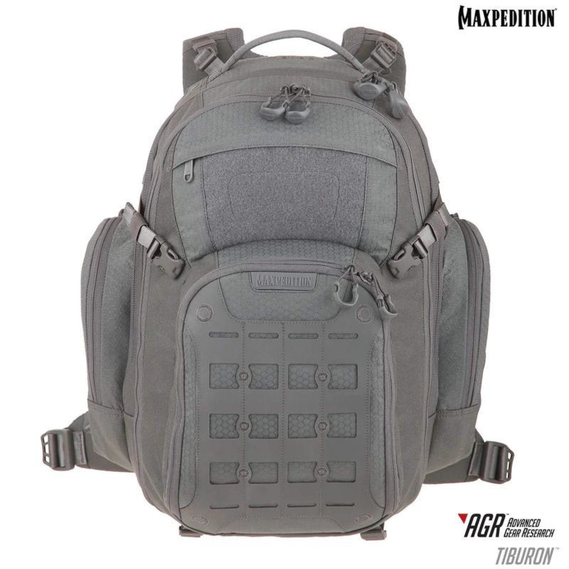 Дизайн 34-литрового рюкзака Maxpedition Tiburon предусматривает полностью раскрывающиеся основное отделение, внутри которого предусмотрен чехол под питьевую систему или ноутбук и один сетчатый карман общего назначения, фронтальное отделение-органайзер и небольшой карман в верхней части, а также два боковых утилитарных отделения и карман на дне рюкзака, рассчитанный под дождевик.