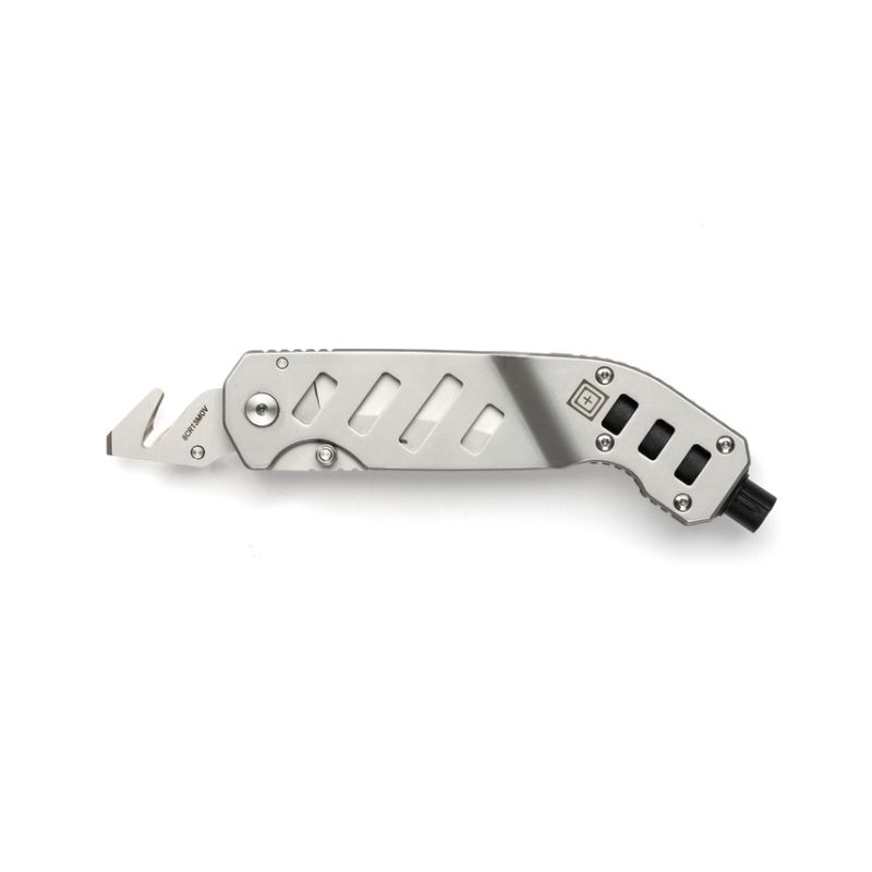 Ключевое дополнение линейки профессиональных ножей 5.11® — нож ESC Rescue. Если верить телевизору, выбраться из разбитой машины очень легко... но это так только кажется. Пристяжные ремни и стекла автомобилей очень прочны, и, как Вы понимаете, не просто так. В любом случае, что ремень, что стекло — не препятствие для спасения, если у Вас при себе нож ESC Rescue. Подпружиненный стеклобой из карбидового сплава легко разобьет даже прочное стекло, раскладной стропорез (фактически, второе лезвие специальной формы) прекрасно режет полотно пристяжного ремня. Основное лезвие ножа (6.35 см или 2.5 дюйма, дроп-пойнт) справится со всеми остальными проблемами... Если с ними вообще можно справиться при помощи короткого острого лезвия. Небольшой и простой с виду нож — на самом деле, превосходный инструмент спасателя.