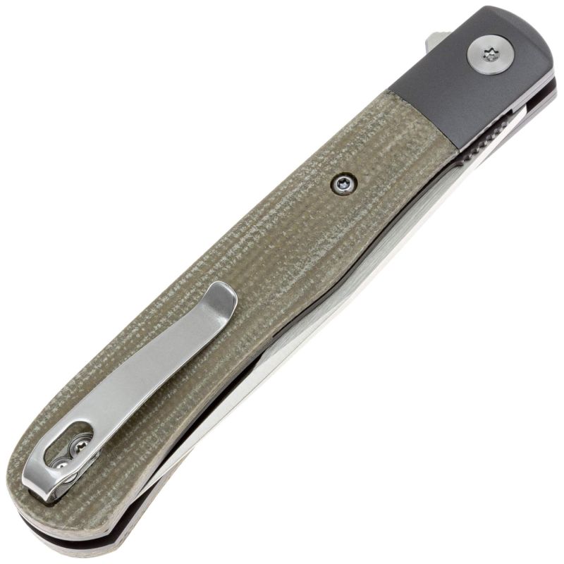 Рукоять Modern Trapper Uno изготовлена из микарты — прочного композитного материала на основе льна и смолы, который оправдает ожидания даже в самых сложных условиях. Этот материал обладает высокой цепкостью, особенно в условиях влаги, и со временем приобретает эффектную патину, которая придаёт ножу уникальный характер и индивидуальность. Стальная клипса, выполненная в формате tip-up, позволяет удобно носить нож в кармане, сохраняя его эстетическому виду.