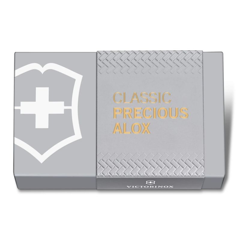 Classic SD Precious Alox — это элегантная и инновационная версия классического швейцарского армейского ножа, вобравшая в себя не только превосходную функциональность, но и элемент роскоши. Эта модель разработана для тех, кто ценит качество и стиль в одном продукте.