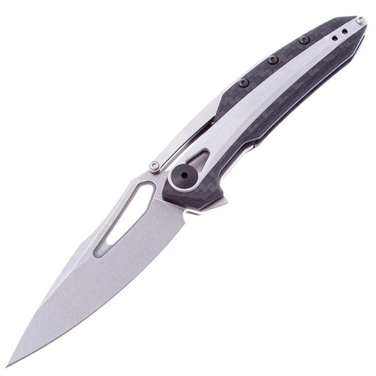 Рукоять изготовлена с использованием карбоновых накладок. Карбон это довольно дорогой, но невероятно прочный материал. Он очень легок и не боится влияния химических реагентов. Переплетения карбоновых нитей, вырисовывают уникальную текстуру, поэтому карбон прочно обосновался в сегменте аксессуарных и джентльменских ножей. Стоит отметить, что несмотря на то, что карбоновые нити почти не возможно порвать, этот материал плохо переносит удары, а так же прямое воздействие солнечных лучей.