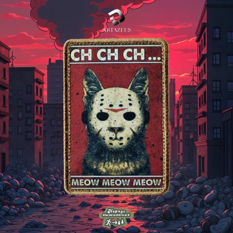 Нашивка, патч "мяу мяу мяу" тактическая с липучкой.