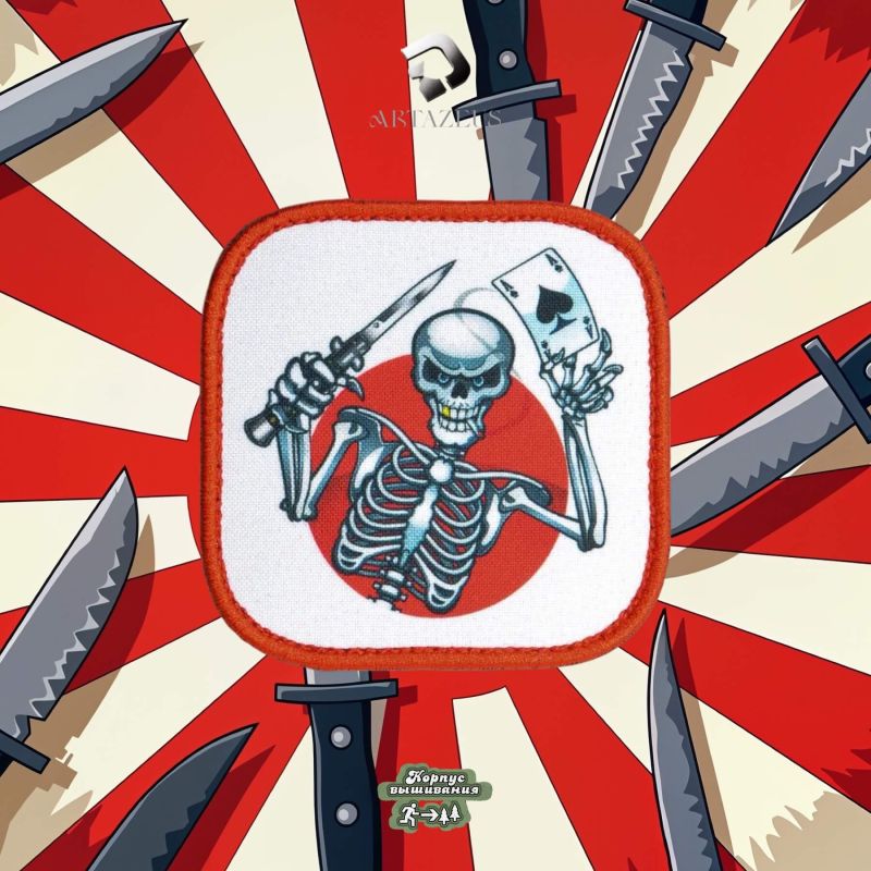 Нашивка, патч "Скелет с ножом и картой" тактическая с липучкой.