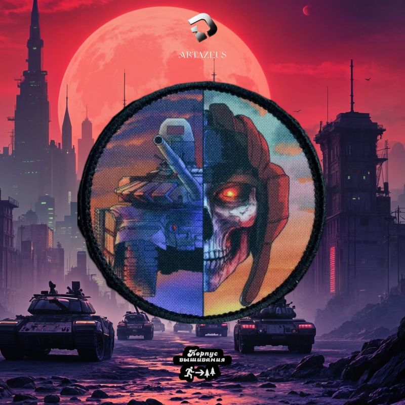 Нашивка "Танкист", изображающая танк, который занимает одну половину лица, и череп в танкистском шлеме, представляющий другую половину, несет в себе мощный визуальный символизм. Это изделие не только служит элементом стиля, но и отражает сложные аспекты жизни военных, особенно танкистов, которые часто становятся символом привычного военного противостояния и суровых реалий войны.