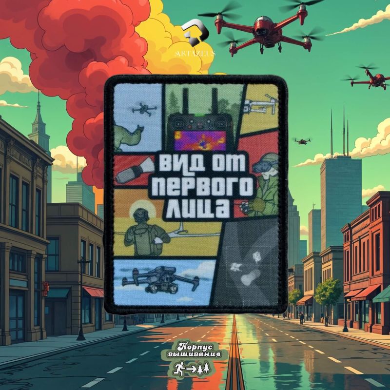 Нашивка, патч "Вид от первого лица, в стиле обложки игры GTA: Управление дроном в боевых условиях", может отражать не только современные военные технологии, но и важность навыков бойца, которые критически необходимы на поле боя. Вместо акцента на высокие технологии, такой патч может акцентировать внимание на мастерском умении военнослужащего применять инструменты и стратегии для достижения успеха в сложных условиях.