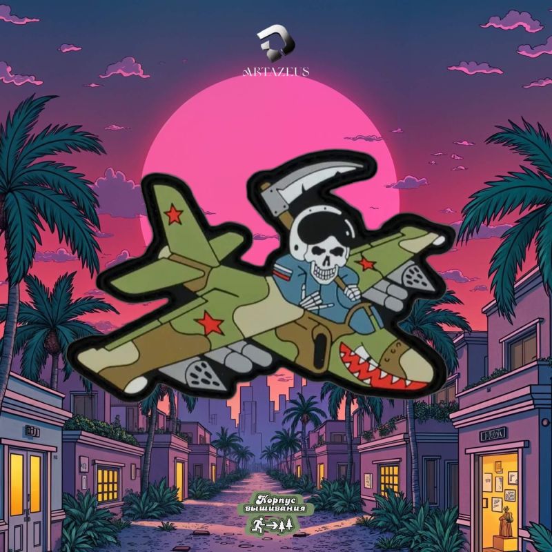 В центре композиции изображён Жнец — классический символ смерти — с его характерной косой, однако в этом изображении он принимает облик русского летчика, что придаёт особый смысл и силу этому патчу. Этот визуальный элемент отлично перекликается с образом Су-25 — знаменитого штурмовика, который стал олицетворением силы и мощи военно-воздушных сил. Такое сочетание символов не только поражает своей креативностью, но и передает мощный месседж о мужестве и готовности защитить свои идеалы и принципы