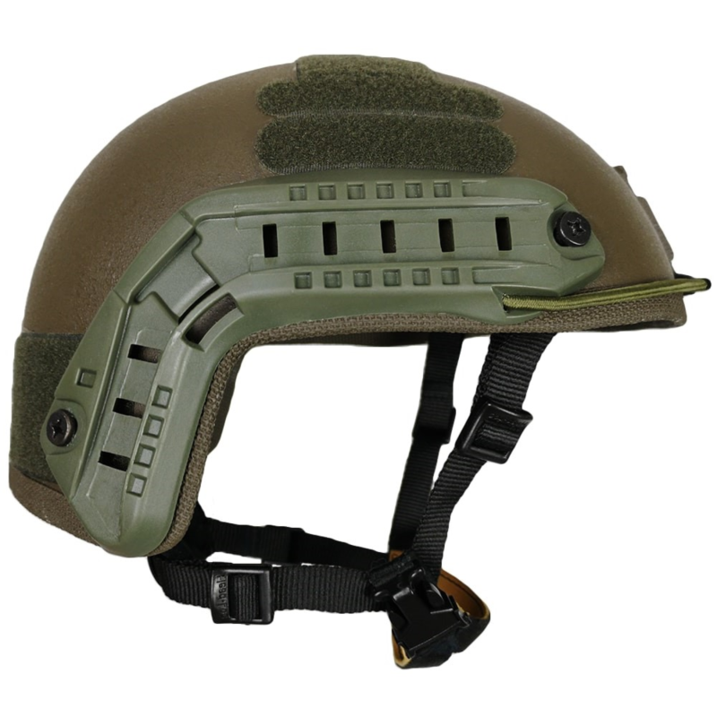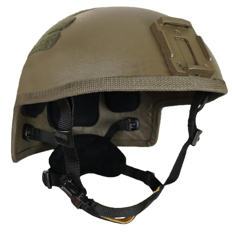 Защитный шлем изготовлен из отечественных материалов и предназначен для использования в комплекте боевой экипировки в качестве противоосколочной и противопульной защиты головы человека.
