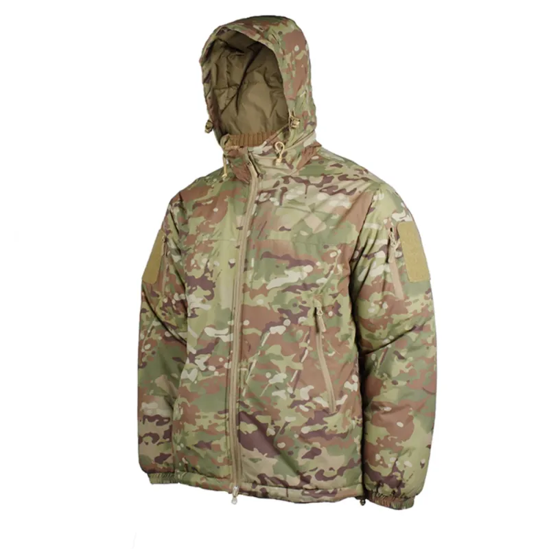 Натуральный утеплитель обладает выраженными гидрофобными свойствами. Это гарантирует тепло и комфорт при разнообразных (даже самых суровых) условиях внешней среды. Внешний слой из нейлона обеспечивает абсолютную носкость и защиту внутренних слоев. Ноу-хау данной тактической куртки является использование плетения типа RipStop (клетка) при этом основное волокно ткани переплетается армирующим каркасом из более прочной и большей по диаметру нити. Капюшон позволяет использовать каску или шлем. Благодаря использованию высококачественного нейлона куртка прекрасно переносит упаковку в компрессионный мешок (поставляется в комплекте).