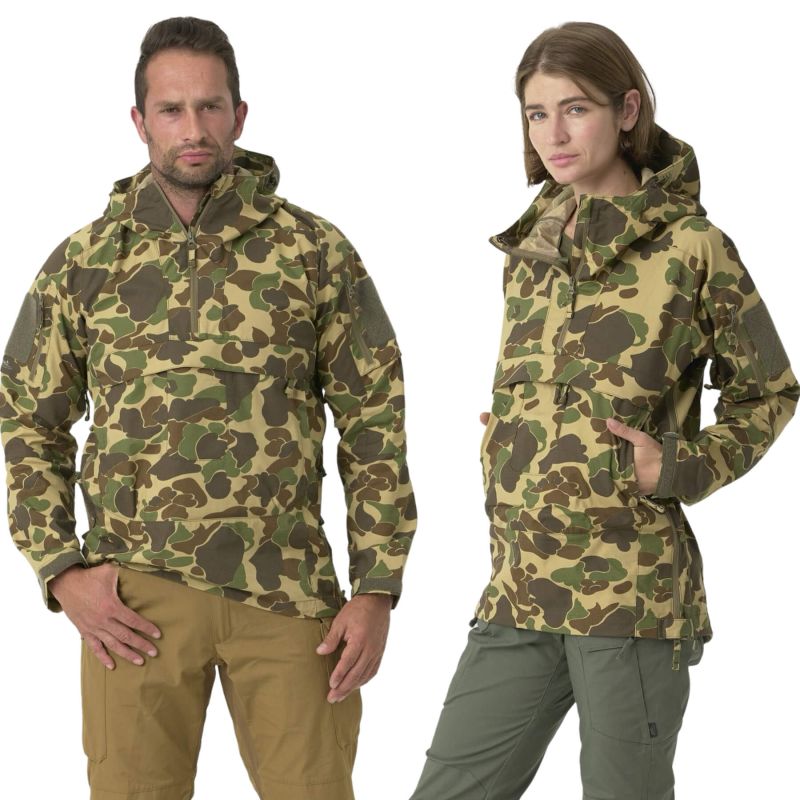 Универсальность кроя: Этот анорак выполнен в унисекс-формате, что позволяет использовать его как мужчинам, так и женщинам. Свободный крой оверсайз обеспечивает свободу движений и удобство, не подчеркивая фигуру. Отсутствие подкладки на спине обеспечивает легкость и уменьшает вес изделия, что крайне важно в полевых условиях.