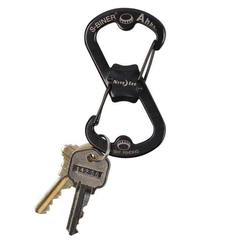 Двусторонний карабин S-Biner Ahhh... от Nite Ize. Изготовлен из прочного алюминиевого сплава. Помимо своей основной функции — присоединение мелких предметов — карабин может служить в качестве открывалки для бутылок. Теперь вы будете использовать этот карабин не только как средство крепежа, но и в любой момент сможете с его помощью открыть бутылку любимого напитка. Отлично подойдёт в качестве брелка на ключи. Доступен в нескольких вариантах расцветки.