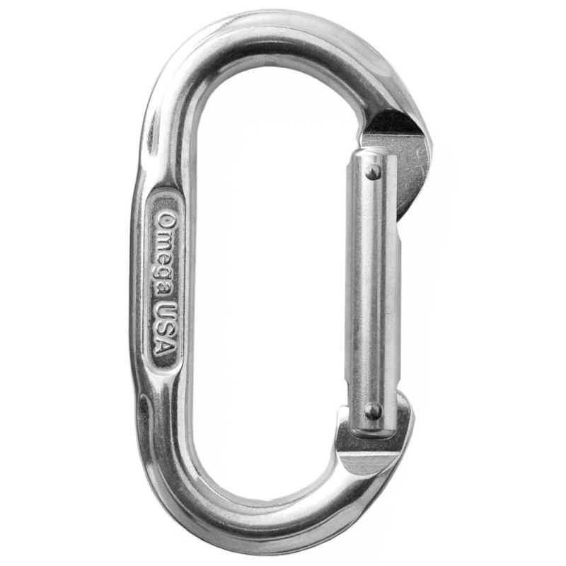 Карабин Omega O с разрывной нагрузкой 2,5 тонны открываются с помощью изогнутой защелки.